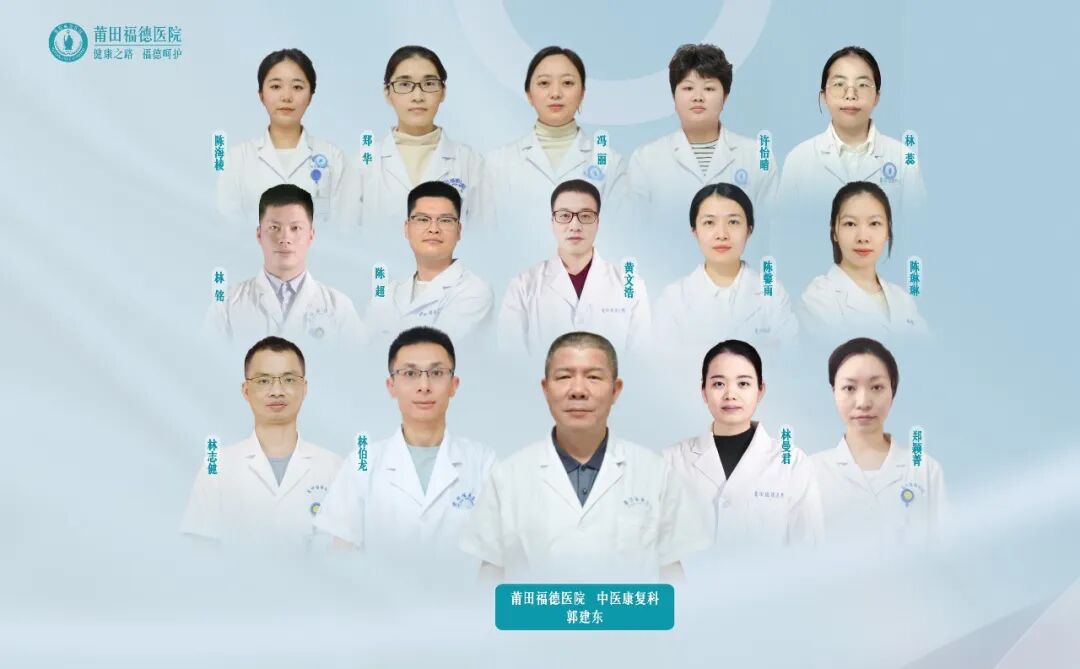 莆田福德医院康复科由福建中医药大学附属二院专家郭建东主任和福建省中西医结合协会骨科微创委员会委员林伯龙主任 领衔 ,中医药大学毕业的推拿针灸康复专业医师诊治。科室以中西医结合为特色,致力于将传统中医疗法和精髓与现代康复技术的先进理念完美结合,在神经康复、骨科康复、疼痛康复、老年康复、儿童康复、产后康复等领域,具有鲜明特色与显著优势。