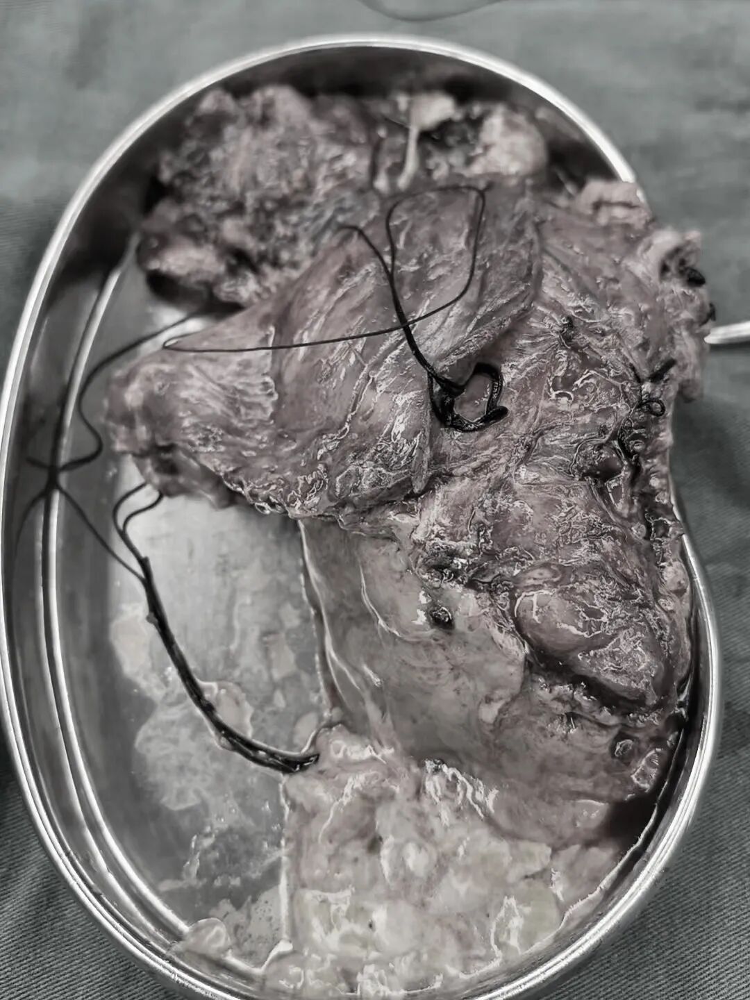 在充分完善术前准备后,谢庆祥教授带领手术团队为患者行“左肾周粘连松解术+左肾输尿管切除术”。 术中患肾与周围脏器紧密粘连成“铁板样”,肾周积聚大量脓液、脓苔, 但手术团队凭借精湛的技术和丰富的经验,在麻醉科、手术室等科室的密切配合下, 历经4个多小时的艰难、精细操作,顺利为患者“拆除”了体内这颗随时可能引爆的“炸弹”, 充分彰显了我院外科处理复杂性手术的卓越技术水平。