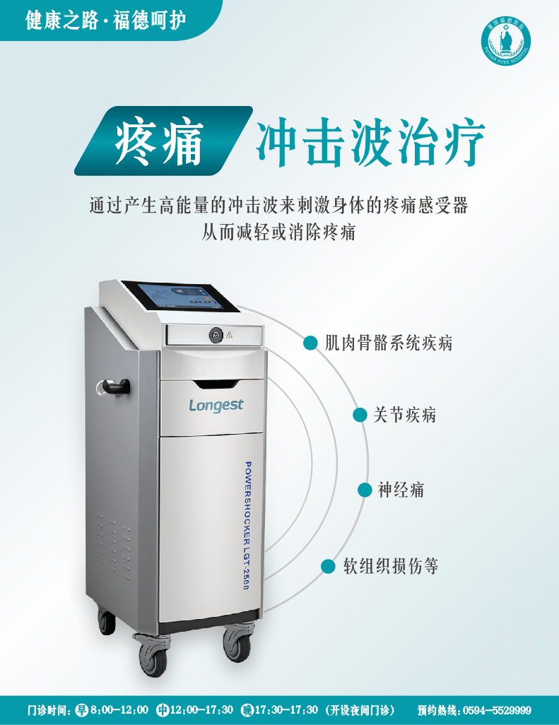 好的康复效果,离不开先进设备的支撑。康复科拥有大批康复治疗设备及仪器,如脑生物反馈治疗仪,冲击波治疗仪,肢代步训练器,肢体悬吊训练器,中频脉冲治疗仪,低频脉冲治疗仪,干扰电治疗仪以及中药熏药治疗仪和大量运动治疗、物理治疗辅助设施和设备。