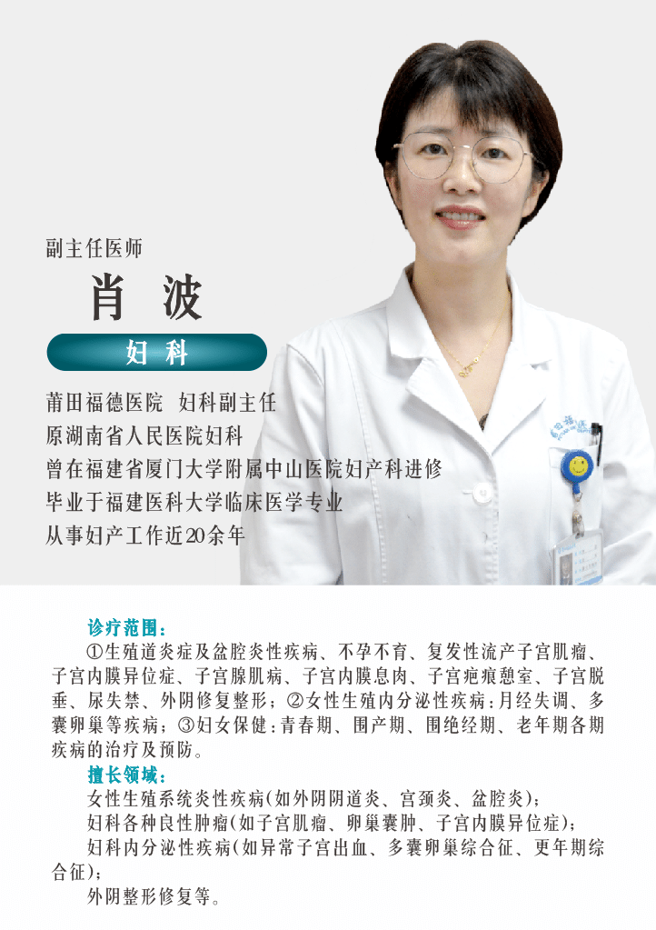 擅长领域: 阴道炎、外阴炎、宫颈炎、盆腔炎、子宫内膜炎、子宫肌瘤、卵巢囊肿、月经不调、痛经等妇科常见疾病的诊断和治疗。